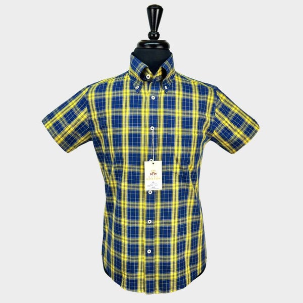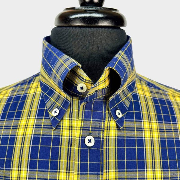 Real Hoxton Button Down - Indigo Lemon Check SS REA39