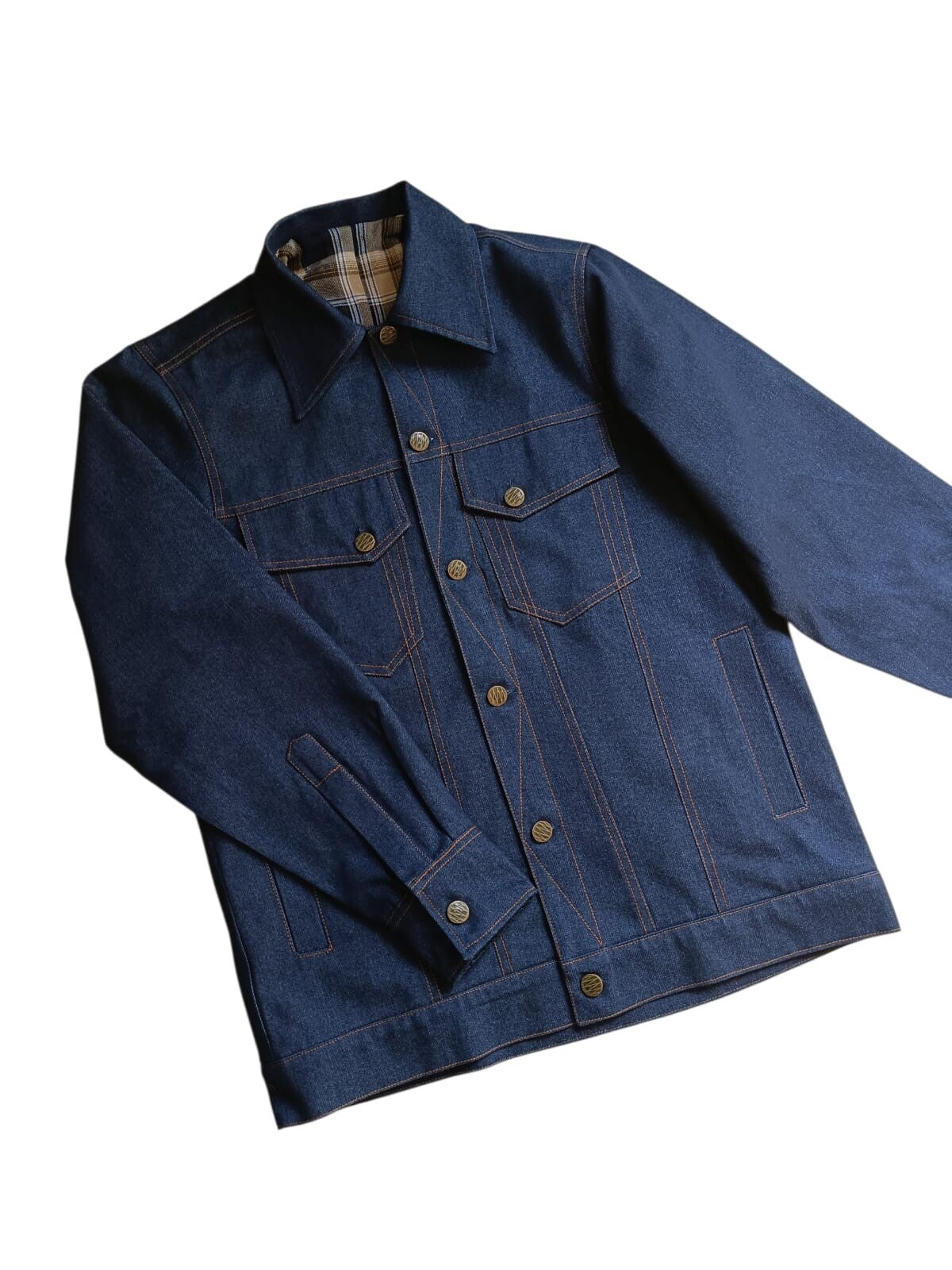 Diese Atelier-Jacke überzeugt mit schwerem Denim , sorgfältig ausgearbeiteter Passform, ausgewähltem Tartaninnenfutter, Innentasche und viel Liebe zum Detail . Es stehen verschiedene Denim und Tartanmuster zur Auswahl.
